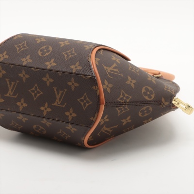 Louis Vuitton Ellipse PM in Monogram coated canvas. Featuring gold-toned hardware, vachetta leather trim and top handles. The top two-way zip closure opens to a cocoa brown textile interior with a patch pocket. Approximate dimensions: 21cm(L) x 25cm(H) x 15cm(D), handle drop 11cm. Accompanied by keys and padlock. With Entrupy Certificate of Authenticity. (Pre-owned)