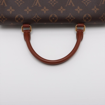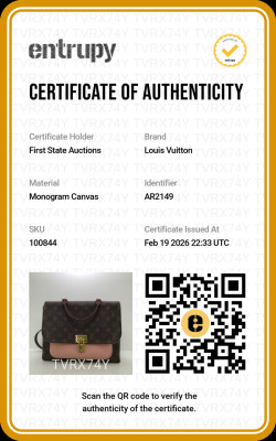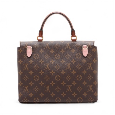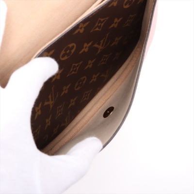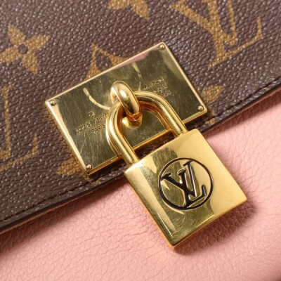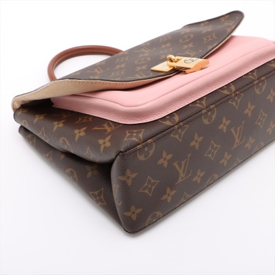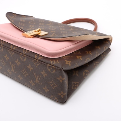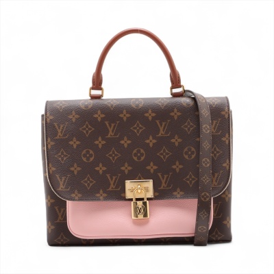 Louis Vuitton Marignan in Monogram coated canvas and pink leather (circa: 2019). Featuring gold-toned hardware, single rolled top handle and a detachable Monogram coated canvas strap. The frontal flap with LV padlock magnetic closure opens to an inner flat pocket and beige microfibre lining interior with patch pockets. Approximate dimensions: 28cm(W) x 21cm(H) x 9cm(D), with a 9cm handle drop and a 54cm adjustable strap drop. With Entrupy Certificate of Authenticity.