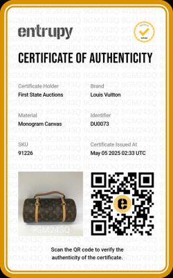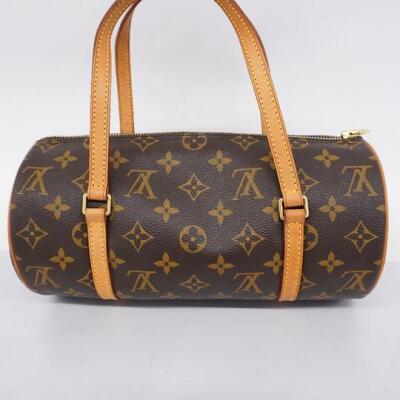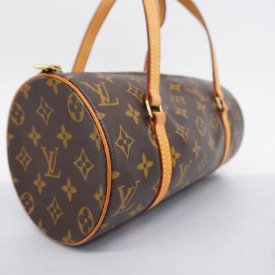 Louis Vuitton Papillon 26 in Monogram coated canvas. Featuring gold-toned hardware, and light brown leather trim and flat handles. The zipper on top opens to a brown taiga canvas lining interior. Approximate dimensions: 26cm(L) x 13.5cm(H) x 13.5cm(D), handle drop 12cm. With Entrupy Certificate of Authenticity. (Pre-owned)