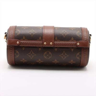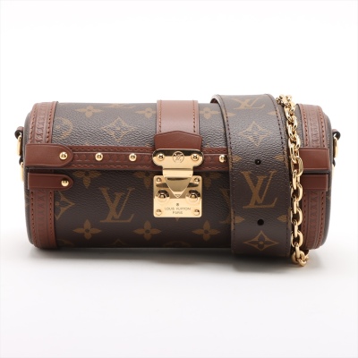 Louis Vuitton Papillon Trunk in Monogram coated canvas, with brown, LV logo embossed leather trim (RFID confirmed, circa: after 2021). Featuring gold-toned hardware, a detachable chain handle, and detachable wide leather strap. The push-lock closure opens to a spacious tan microfibre interior. Approximate dimensions: 20cm(W) x 9cm(H) x 9cm(D), with a 17cm chain handle drop and 53cm adjustable leather strap drop. With Entrupy Certificate of Authenticity.