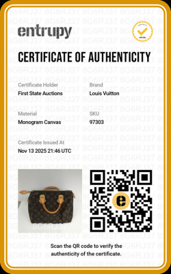 Louis Vuitton Speedy 25 in Monogram coated canvas. Featuring gold-toned hardware, natural cowhide leather trim, and dual leather top handles. The top zipper opens to a brown textile interior with a patch pocket. Approximate dimensions: 25cm(W) x 19cm(H) x 14.5.5cm(D), 8cm handle height. Accompanied by Louis Vuitton padlock and keys. With Entrupy Certificate of Authenticity. (Pre-owned)