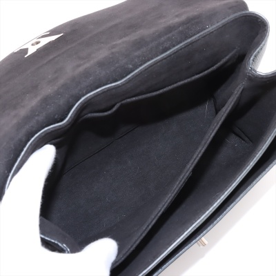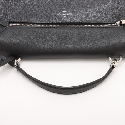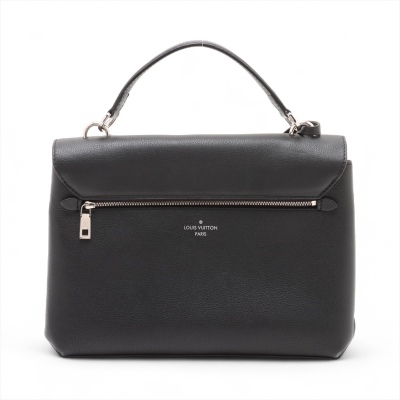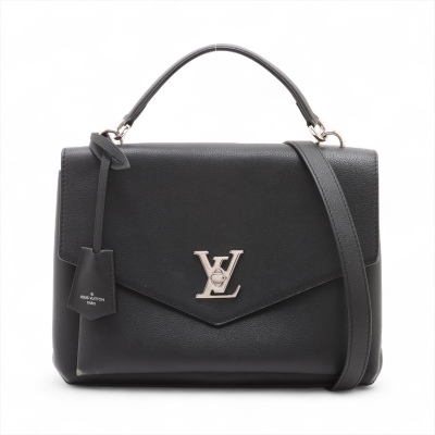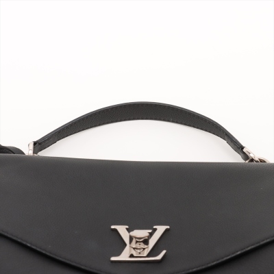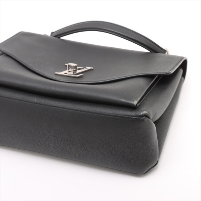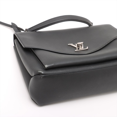 Louis Vuitton My Lockme top handle bag in black calfskin leather. Featuring silver-tone hardware, single flap handle and detachable shoulder strap. The frontal flap with LV turn lock closure opens to a front patch pocket and black microfiber lining, 2 compartments interior. Approximate dimensions: 28cm(W) x 20cm(H) x 10cm(D), 9cm handle drop, 60cm shoulder drop, adjustable. Accompanied by LV box. With Entrupy Certificate of Authenticity. (Pre-owned)