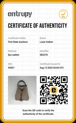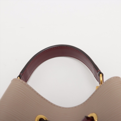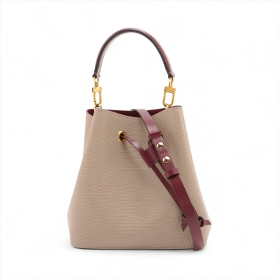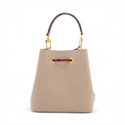 Louis Vuitton NeoNoe BB bag in beige Epi leather. Featuring gold-toned hardware, and detachable Maroon flat top handle. The Maroon leather drawstring closure opens to Maroon microfiber interior divided into two compartments by a pocket with button closure. Approximate dimensions: 20cm(L) x 21cm(H) x 13cm(D), handle drop 12cm, adjustable and detachable shoulder strap drop 55cm. With Entrupy Certificate of Authenticity. (Pre-owned)