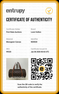 Louis Vuitton Papillon 26 handbag in Monogram coated canvas (Circa: 2000). Featuring gold-toned hardware, brown leather trim and flat handles. The top zipper opens to a reddish-brown textiled-lined interior. Approximate dimensions: 26cm(L) x 13.5cm(H) x 13.5cm(D), handle drop 12cm. With Entrupy Certificate of Authenticity.