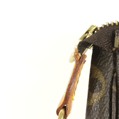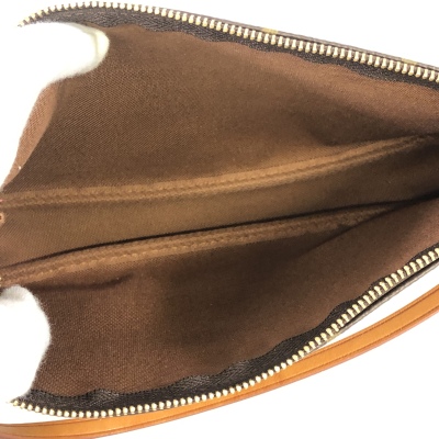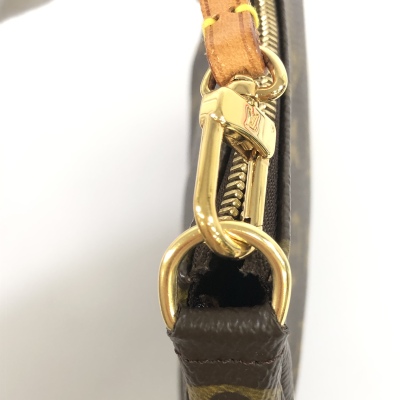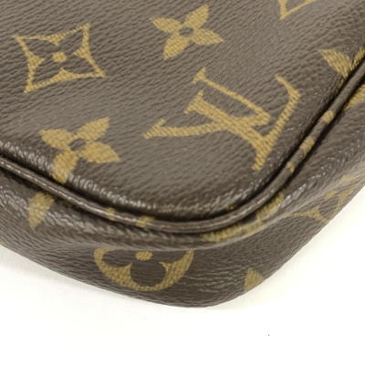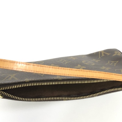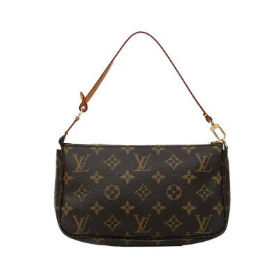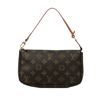 Louis Vuitton Pochette Accessoires in Monogram coated canvas (circa: 2002). Featuring gold-toned hardware, convertible vachetta leather carry strap to wrist strap. The zipper closure opens to a dark brown textile interior. Approximate dimensions: 21.5cm(W) x 12cm(H) x 4cm(D), strap drop 15cm. With Entrupy Certificate of Authenticity.