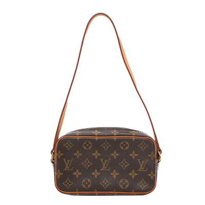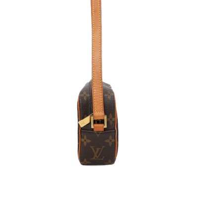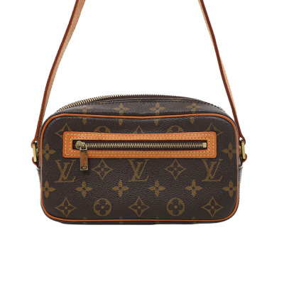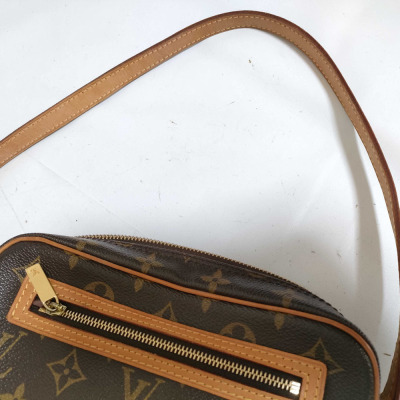 Louis Vuitton Pochette Cite in Monogram coated canvas and vachetta leather trims (circa: 2002). Featuring gold-toned hardware, flat leather strap and an exterior zippered pocket. The top zipper opens to a brown leather interior with a patch pocket. Approximate dimensions: 21cm(base-W) x 12cm(H) x 5.5cm(D), with a 24cm strap drop. With Entrupy Certificate of Authenticity.