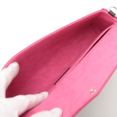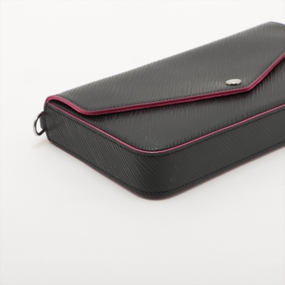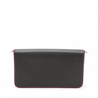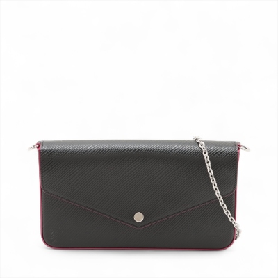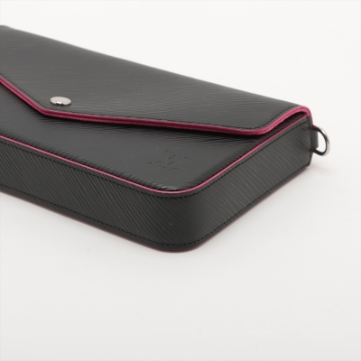 Louis Vuitton Pochette Félicie in black Epi leather with pink trims. Featuring silver-tone hardware, detachable chain link shoulder strap. Front flap with snap button opens to a pink microfiber lining interior with a patched pocket, and removable pouch & card holder. Approx. dimensions: 21cm(W) x 12cm(H) x 3cm(D), 56cm shoulder height. Accompanied by LV dustbag and box. With Entrupy Certificate of Authenticity. (Pre-owned)