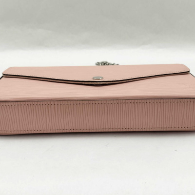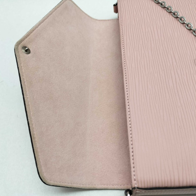 Louis Vuitton Pochette Felicie bag in light pink Epi leather. Featuring brown leather trims, silver-tone hardware. The bag opens to a tonal microfibre lining with a patch pocket, a removable card holder & a zipper pouch. Approximate dimensions: 21cm(W) x 12cm(H) x 3cm(D), and detachable 55cm chain drop. With Entrupy Certificate of Authenticity. (Pre-owned)