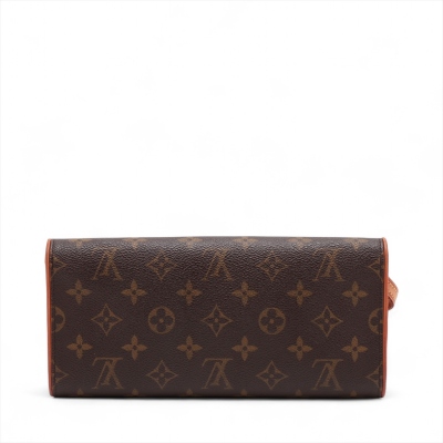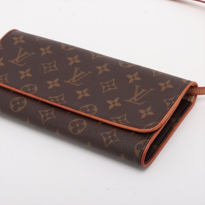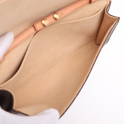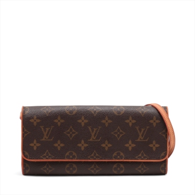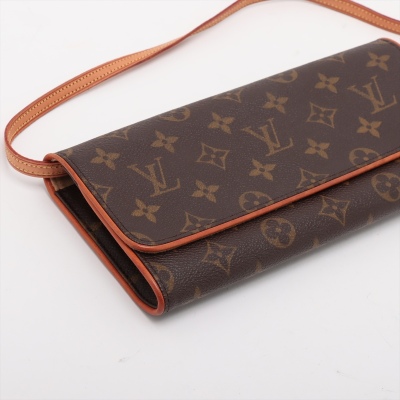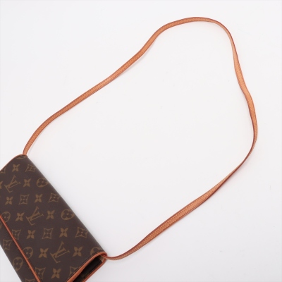 Louis Vuitton Pochette Twin GM Bag in monogram coated canvas with vachetta leather trims (year 2001). Featuring gold-toned hardware and a detachable flat vachetta leather shoulder strap. The magnetic button on flap opens to a beige microfiber interior with a slip pocket. Approximate dimensions: 24.5cm(L) x 11.5cm(H) x 3.5cm(D) and 49.5cm shoulder strap drop. Accompanied by Louis Vuitton dust bag. With Entrupy Certificate of Authenticity. (Pre-owned)