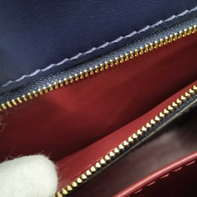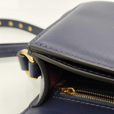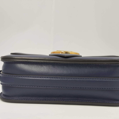 Louis Vuitton Pont 9 shoulder bag in navy blue smooth calfskin. Featuring gold-tone hardware, LV motif at front, black leather trims and an adjustable shoulder strap with LV gold accent. The magnetic button on flap opens to a red leather interior with a front flat pocket, a main compartment with patch & zip pockets and a card slot. Approx dimensions: 23cm(L) x 15cm(H) x 8cm(D), 50cm shoulder strap drop, adjustable. With Entrupy Certificate of Authenticity. (Pre-owned).