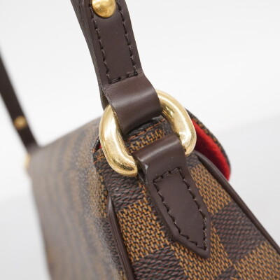 Louis Vuitton Ravello PM bag in Damier Ebene coated canvas (circa: 2005). Featuring gold-toned hardware, a flat leather strap and a push lock closure. This opens to a red microfibre lined interior with a patch pocket. Approximate dimensions: 26cm(W) x 12cm(H) x 7cm(D), with a 18cm strap drop. With Entrupy Certificate of Authenticity.