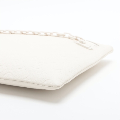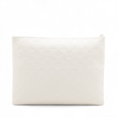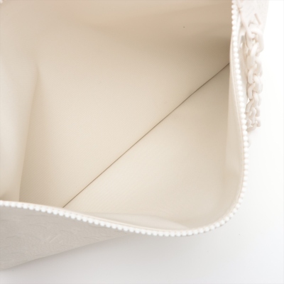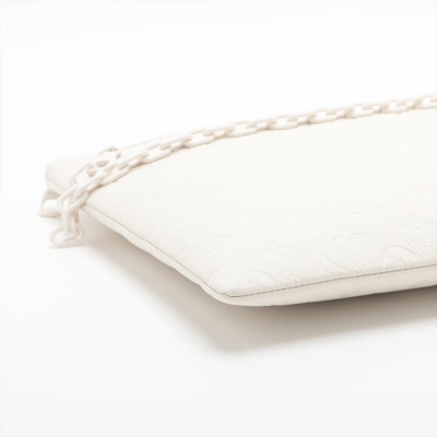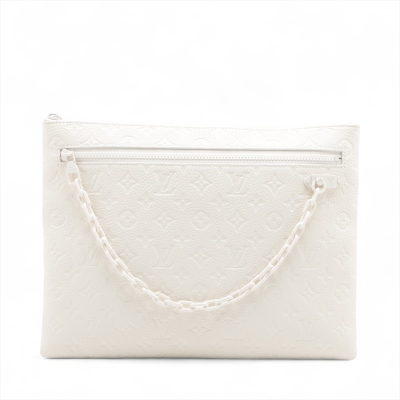 Louis Vuitton Solar Ray A4 pouch in white Monogram embossed leather. Featuring white tone hardware, a front zipper pocket with a matte white chain. The top zipper opens to a white fabric interior with a patch pocket. Approximate dimensions: 36cm(L) x 26cm(H) x 2cm(D). Accompanied by a LV box. With Entrupy Certificate of Authenticity. (Pre-owned)