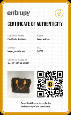 Louis Vuitton Speedy 25 in Monogram coated canvas. Featuring gold-toned hardware, natural cowhide leather trim, and dual leather top handles. The top two-way zipper opens to a brown textile interior with a patch pocket. Approximate dimensions: 25cm(W) x 19cm(H) x 14.5.5cm(D), 8cm handle height. Accompanied by LV padlock and keys, and dustbag. With Entrupy Certificate of Authenticity. (Pre-owned)