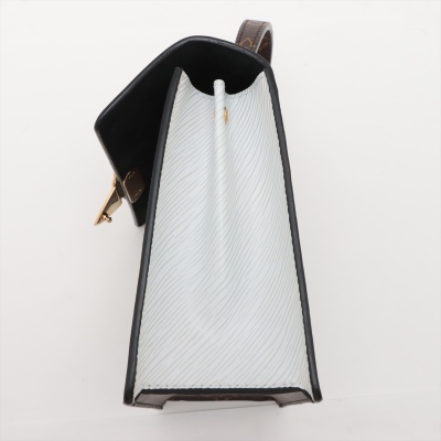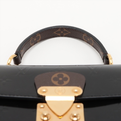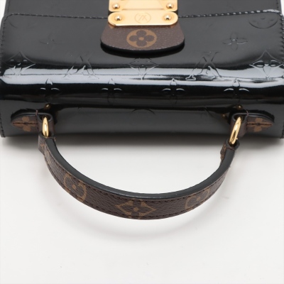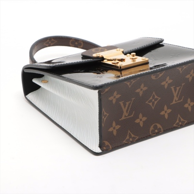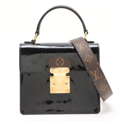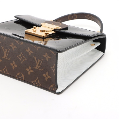 Louis Vuitton Spring Street PM bag in black Monogram Vernis leather. Featuring gold-toned hardware, white Epi leather sides, leather top handle and a detachable strap. The push-lock closure opens to a black suede interior with a patch pocket. Approximate dimensions: 19cm(L) x 17cm(H) x 8.5cm(D), 8cm handle drop and 50cm strap drop. Includes a leather tag stamped: YUKI. With Entrupy Certificate of Authenticity. (Pre-owned)