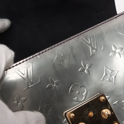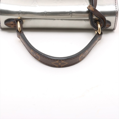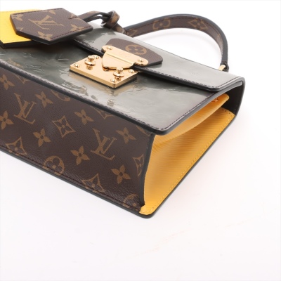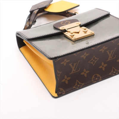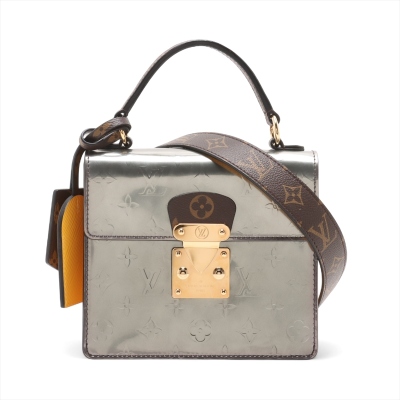 Louis Vuitton Spring Street PM bag in silver Monogram Vernis leather (Circa: 2018). Featuring gold-toned hardware, yellow Epi leather sides, classic monogram top handle and a detachable strap in monogram and Epi combination. The push-lock closure on flap opens to a dark grey suede interior with a patch pocket. Approximate dimensions: 19cm(W) x 17cm(H) x 8.5cm(D), with a 8cm handle drop, 43cm strap drop. Accompanied by Louis Vuitton monogram and epi leather tags, care card and cleaning cloth. With Entrupy Certificate of Authenticity.