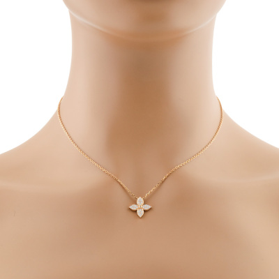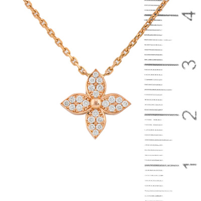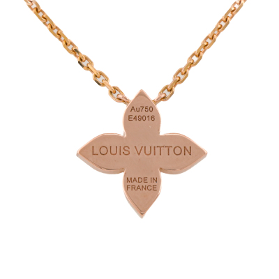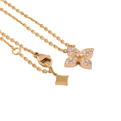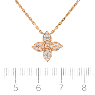 Louis Vuitton Star Blossom pendant with 24 round Natural Diamonds totalling 0.20ct. Motif size: 14mm. 18ct rose gold with Louis Vuitton 18ct rose gold attached chain. Length: 39cm & 42cm. Made in France. With Louis Vuitton box. With Certificate #6884753459292603.