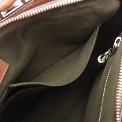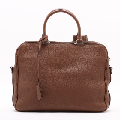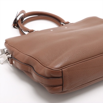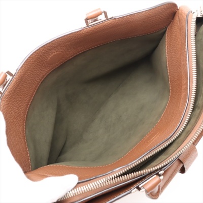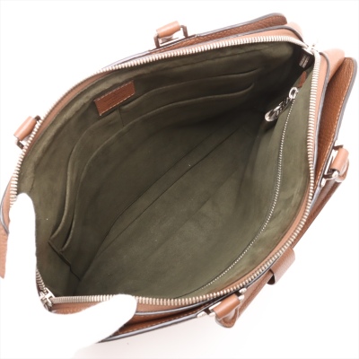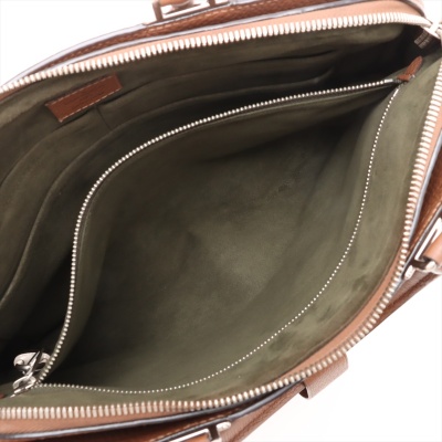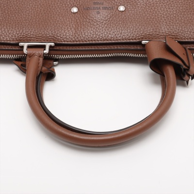 Louis Vuitton Armand briefcase in brown full grain Taurillon leather. Featuring silver-tone hardware, dual rolled leather handles, exterior compartments with magnetic buttons at front & rear, and a detachable and adjustable shoulder strap. The top zip opens to a green microfibre interior with 2 patch pockets, a slip pocket and a zip pocket. Approximate dimensions: 37cm(L) x 28cm(H) x 6.5cm(D), 13cm handle height and a 54cm adjustable shoulder strap drop. Accompanied by keys in a detachable clochette and padlock. With Entrupy Certificate of Authenticity. (Pre-owned)