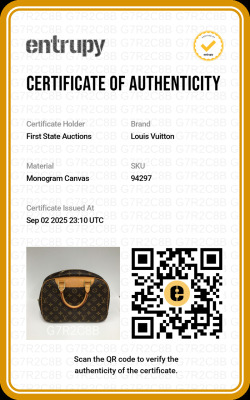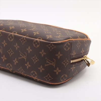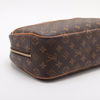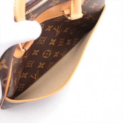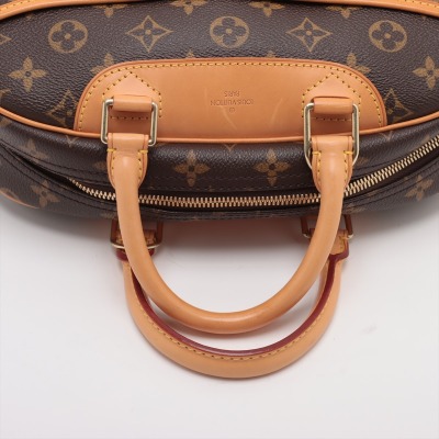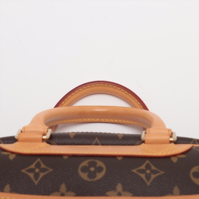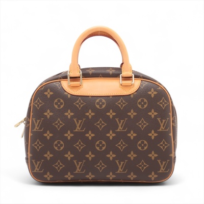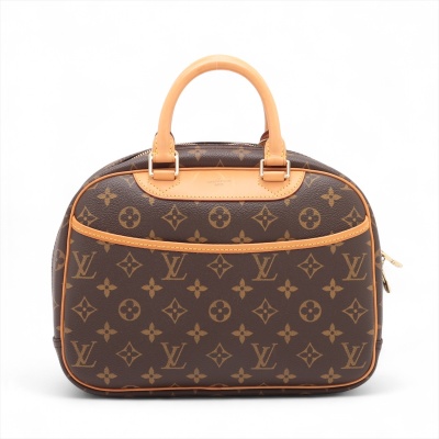 Louis Vuitton Trouville in Monogram coated canvas and with vachetta cowhide leather trims. Featuring gold-toned hardware, dual rolled top handles, a wide front pocket. The top zipper opens to a beige canvas interior with patch pockets. Approximate dimensions: 28cm(W) x 20.5cm(H) x 11cm(D), 9.5cm handle drop. NOT accompanied by padlock and keys. With Entrupy Certificate of Authenticity. (Pre-owned)