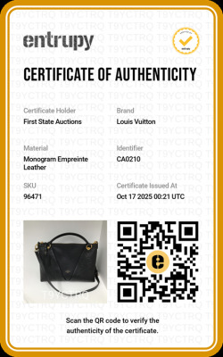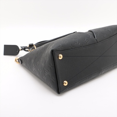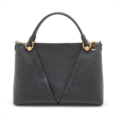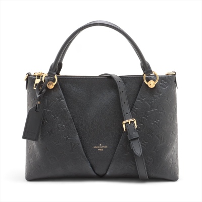 Louis Vuitton V tote MM in black Monogram Empreinte leather. Featuring V shape design exterior, gold tone hardware. The top 2way zipper opens to a spacious black microfiber interior with patch pockets. Approximate dimensions: 34.5cm(W) x 25.5cm(H) x 13cm(D), 12cm hand drop and 52cm detachable strap drop, adjustable. Accompanied by LV leather name tag, dustbag and box. With Entrupy Certificate of Authenticity. (Pre-owned)
