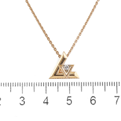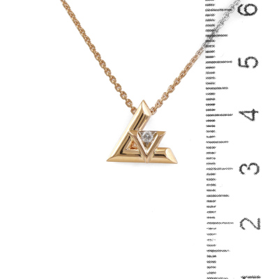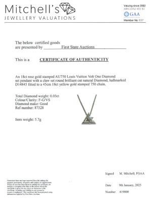 Louis Vuitton Volt One small pendant with a round Natural Diamond of 0.03ct. Motif size: 12mm. 18ct rose gold with 45cm 18ct rose gold chain. Made in France. Weight: 5.7g. With Certificate #419800. (Pre-owned)