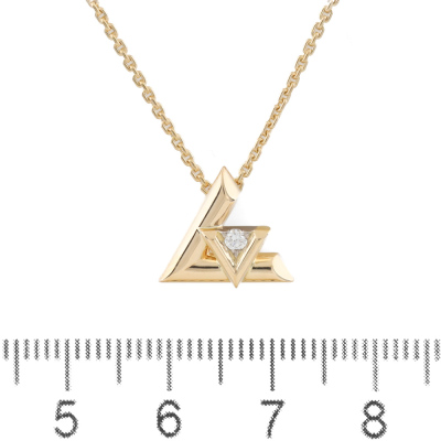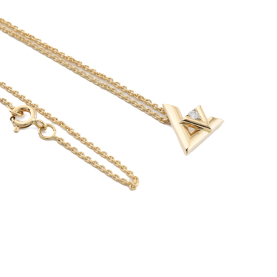 Louis Vuitton Volt One small pendant with one round Natural Diamond of 0.03ct. Motif size: 12mm. 18ct yellow gold with 42cm - 45cm 18ct yellow gold chain. Made in France. Weight: 5.8g. With Louis Vuitton box. (Pre-owned)