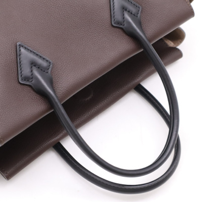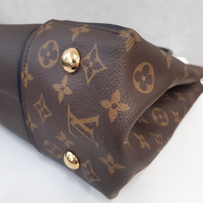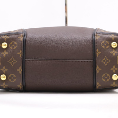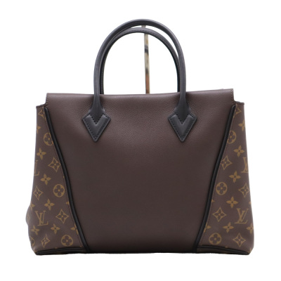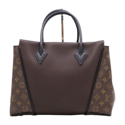 Louis Vuitton W tote PM handbag in brown calfskin leather with monogram coated canvas side panels. Featuring gold-tone hardware, black leather dual top handles & trims. The top with magnetic closure opens to a taupe microfiber interior with two zip pockets & a patch pocket. Approx dimensions: 34cm(Base-L) x 26.5(H) x 12cm(D), and 13cm handle drop. Accompanied by Louis Vuitton receipt. With Entrupy Certificate of Authenticity. (Pre-owned).