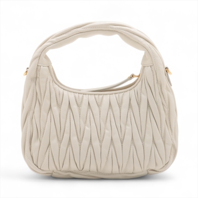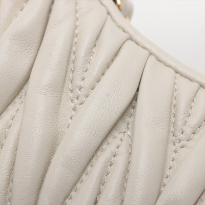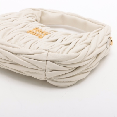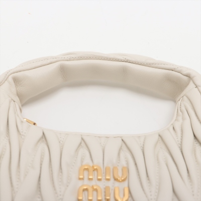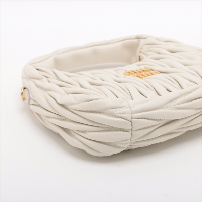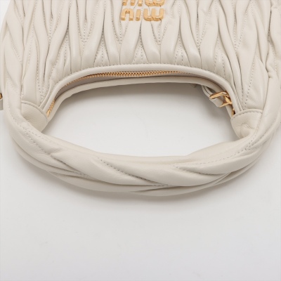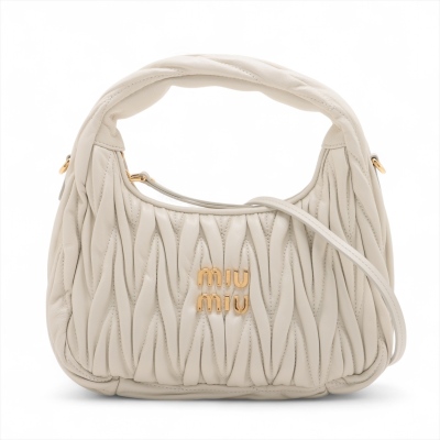 Miu Miu Wander small hobo bag in white matelasse nappa leather. Featuring gold-toned hardware, single leather handle, metal lettering logo at front, and a detachable leather shoulder strap. The top zipper opens to a black cotton satin lining interior. Approximate dimensions: 20cm(L) x 16cm(H) x 6cm(D), 9.5cm handle drop, 56cm shoulder drop. Accompanied by Miu Miu dustbag. With LegitApp Certificate of Authenticity. (Pre-owned)