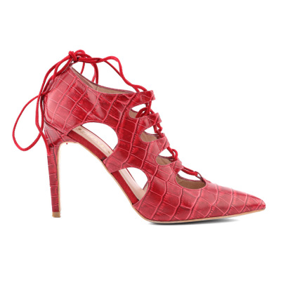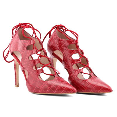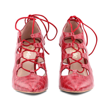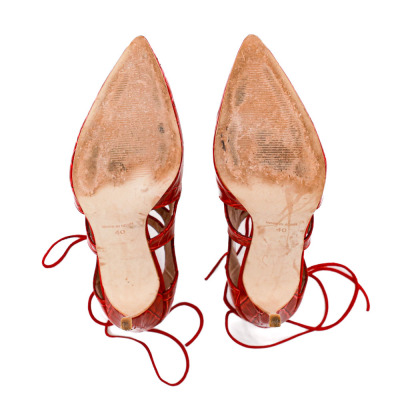 The Mode Collective Lace Up Point 110. Size EU40. Colour: Red. Heel Height: 110mm. Material: Crocodile/Alligator leather. Made in Spain. With The Mode Collective box. (Pre-owned)*