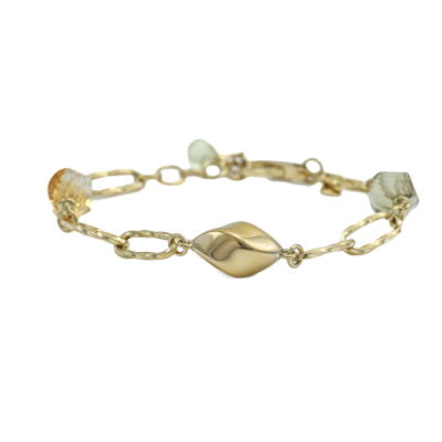 Superoro Quartz bracelet with a Natural Lemon Quartz & a Natural Citrine beads of size 16.6mm x 10mm and a Natural Lemon Quartz briolette bead of size 9.2mm x 6.1mm. 18ct yellow gold. Adjustable length: 21cm. Made in Italy. Weight: 15.7g. (Pre-owned)