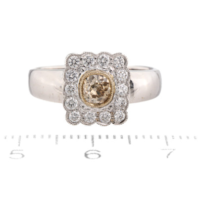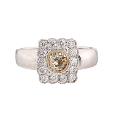 Old Mine Cut Champagne & White Diamond Ring