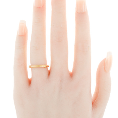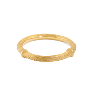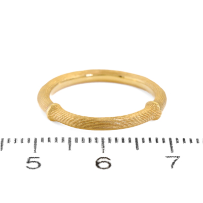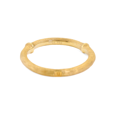 Ole Lynggaard Nature Ring II. 18ct yellow gold satin finished. Ring size K1/2 - ring resizing is not recommended. Band width: 2mm. Weight: 2.9g. (As new)