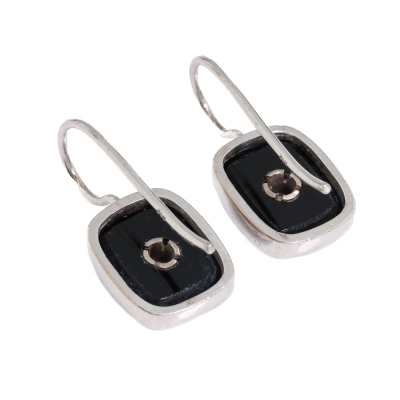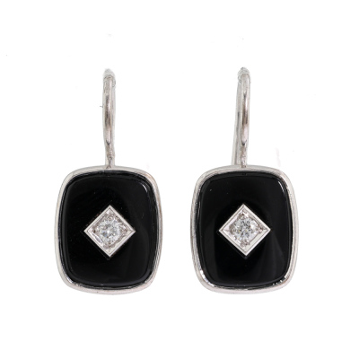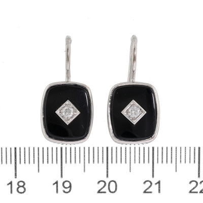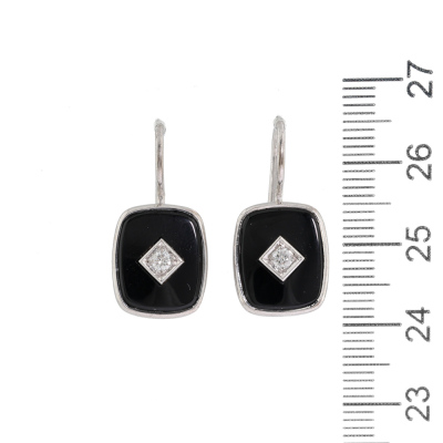 Onyx and Diamond earrings with Natural Onyx inlay and round Natural Diamonds totalling approximately 0.14ct. 18ct white gold. Weight: 5.8g. (Pre-owned)