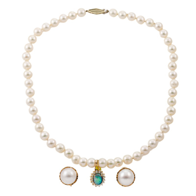 Opal & Akoya Pearl Necklace & Mabe Pearl Earrings