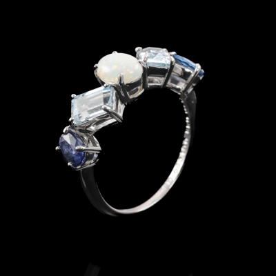 Opal, Aquamarine, Sapphire & Topaz Ring