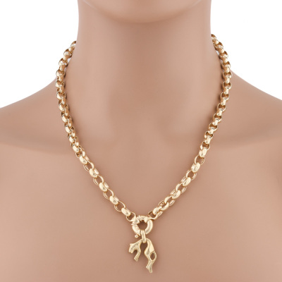panther charm and belcher chain with bolt ring closure. 9ct yellow gold. Length: 50.5cm. Weight: 35.6g.