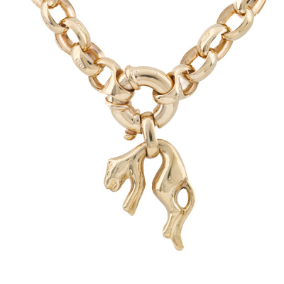 Panther Charm & Belcher Chain, 9ct 35.6g