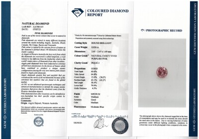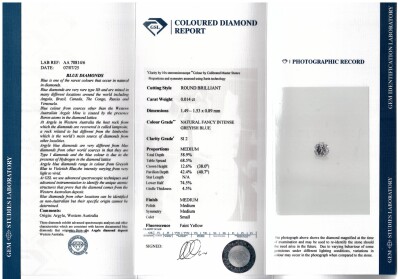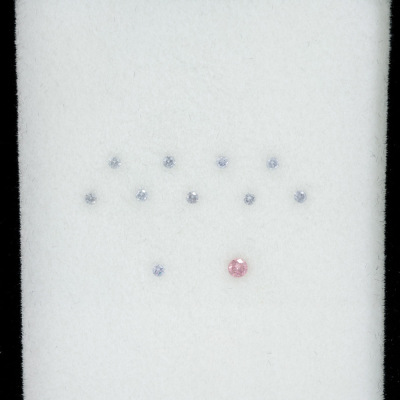 A parcel of 11 round Argyle Origin Natural Diamonds with 1 round brilliant cut Argyle Origin Pink Natural Diamond of 0.06ct (with GSL Report graded as Natural Fancy Vivid Purplish Pink P2 #AA70814/5. Origin: Argyle Deposit, Western Australian) & 10 round Argyle Origin Blue Natural Diamonds totalling 0.14ct (1 x 0.014ct with GSL Report graded as Natural Fancy Intense Greyish Blue SI2 #AA70814/6. Origin: Argyle Deposit, Western Australia). (As New)
