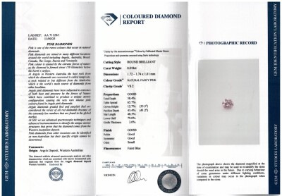 Parcel of 4 round Argyle origin Natural Pink Diamonds totalling 0.05ct (One of 0.018ct with GSL Report graded as Natural Fancy Pink VS2 #AA71120/1. Origin: Argyle Deposit, Western Australian). (As New)