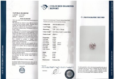 A Parcel of 4 Argyle Origin Natural Pink Diamonds totalling 0.26ct (1 of 0.094ct with GSL Report graded as Natural Fancy Light Pink P2 #AA71190/1. Origin: Argyle deposit, Western Australia). Remaining 3 Diamonds measurement: 2.5mm, 2.41mm & 2.48mm. (New)