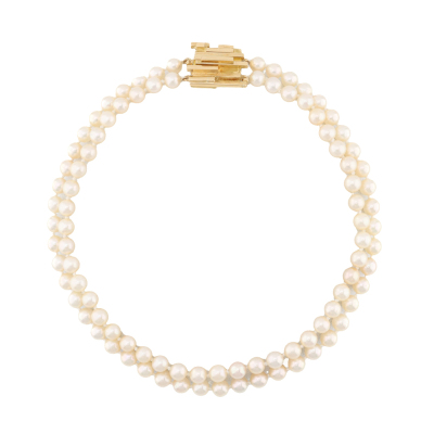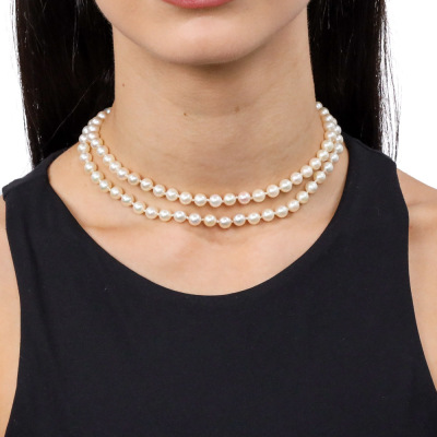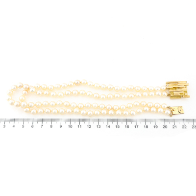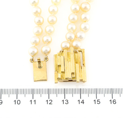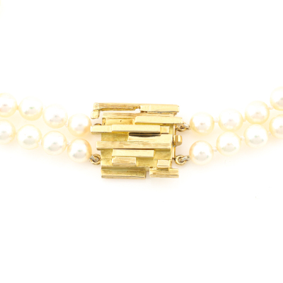 Two-row Pearl necklace with 93 round Cultured Pearl from 6.9mm - 6.5mm. 18ct yellow gold clasp (approximately 19.0g). Length: 37cm. Weight: 58.6g. With Valuation Certificate dated 14/08/1979. (Pre-owned)