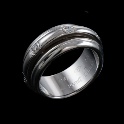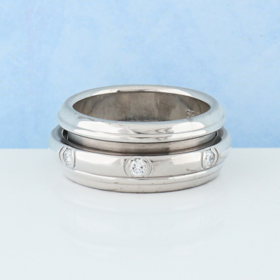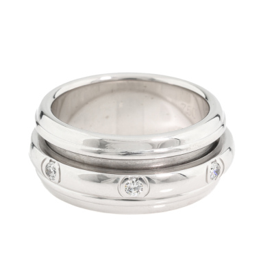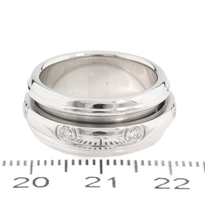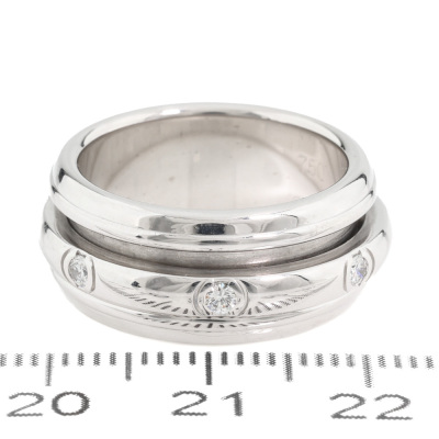 Piaget Possession ring with centre rotatable band set with 7 round Natural Diamonds totalling 0.28ct. 18ct white gold. Piaget stamped size 53, measures as Australian size: X - ring resizing is not is not recommended. Band width: 9.1mm. Weight: 14.6g. (Pre-owned)