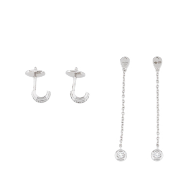 Piaget Possession detachable Drop Earrings with round Natural Diamonds totalling approximately 0.30ct (Estimated grading: F VS). 18ct white gold. Drop length: 3.9cm. Weight: 3.6g. With Piaget box. (Pre-owned)
