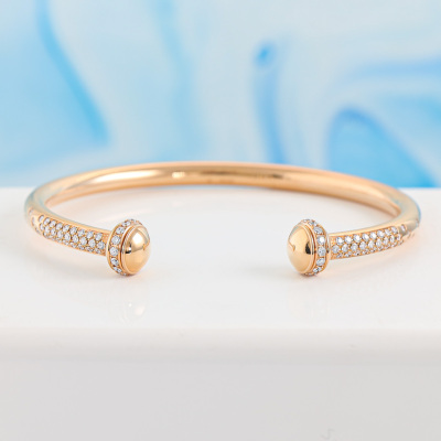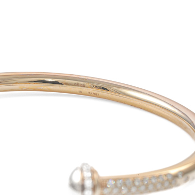 Piaget Possession open bangle bracelet with round Natural Diamonds totalling 1.00ct (Estimated grading: F VS). 18ct rose gold. Piaget stamped size 16. Weight: 15.7g. With Piaget certificate dated 17/12/21 and Piaget box (Pre-owned)
