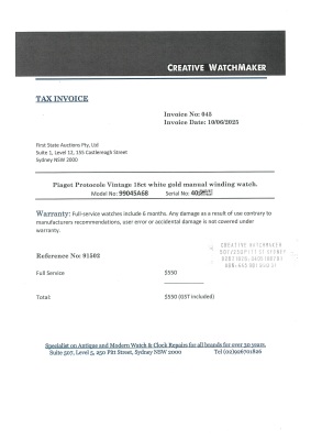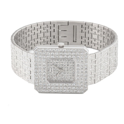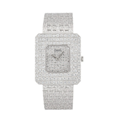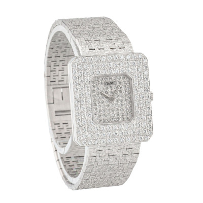 Piaget Protocole Vintage 18ct white gold manual winding ladies watch. Diamond set dial and bezel, Diamonds totalling approximately 1.50ct (Estimated grading: G VS), case diameter: 27mm x 25mm, max wrist size: 15.5cm, Swiss made. Ref# 99045A68, Circa: 1970. With Piaget 18ct white gold bracelet & clasp. With Certificate of Authenticity & Creative full service invoice dated 10/06/2025 . 3 month FSA warranty. Weight: 81.7g (Pre-owned)