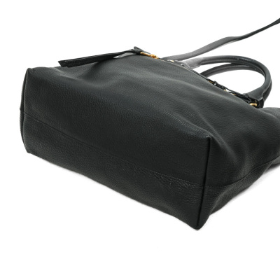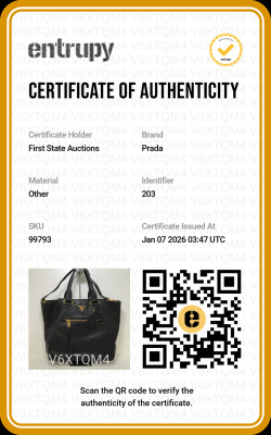 Prada Vitello Daino tote in black grained leather. Featuring an exterior zipper pocket, rolled top handles, gold-toned hardware, adjustable and removable leather strap, and logo lettering details at the front. The top snap button closure opens to a black logo jacquard nylon lining interior with a zipper pocket and button patch pocket. Approximate dimensions: 35cm(Base-L) x 34cm(H) x 15cm(D), 15cm handle drop, with a 52cm adjustable strap drop. Accompanied by a Prada dustbag. With Entrupy Certificate of Authenticity. (Pre-owned)