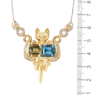 Quartz, Topaz & Diamond Cat Necklace