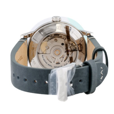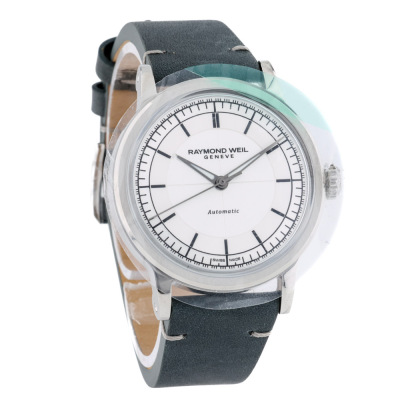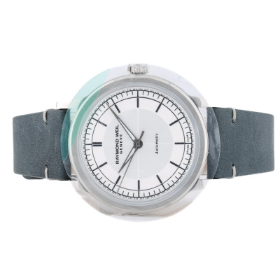 Raymond Weil Millesime stainless steel automatic watch. Silver dial, case diameter: 35mm, strap length: 19cm, Swiss made. Ref# 2125-STC-65001. Raymond Weil Grey leather strap and buckle. With Undated Raymond Weil Guarantee card and Raymond Weil box. 12 month FSA warranty. Weight: 45.5g. (Note: case and buckle in original wrapping and slight wear on the strap due to being display stock)