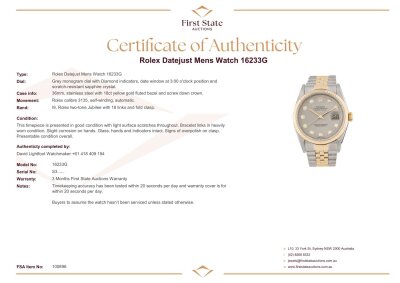 Rolex Datejust Mens Watch 16233G