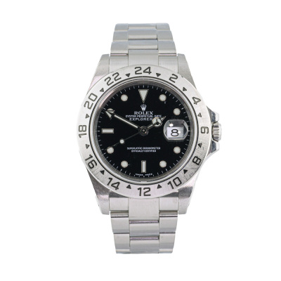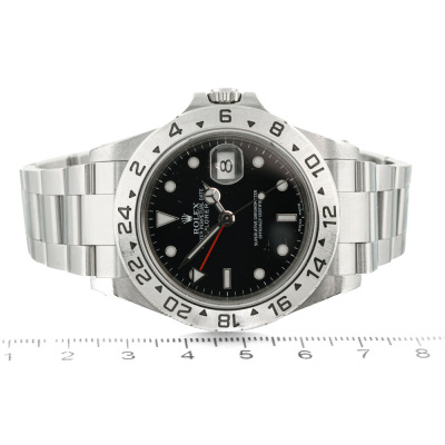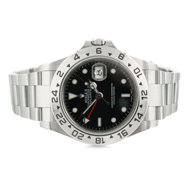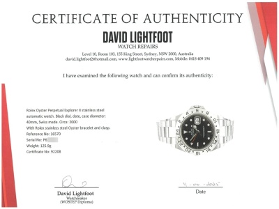 Rolex Oyster Perpetual Explorer II stainless steel automatic mens watch. Black dial, date, case diameter: 40mm, wrist size: 19.5cm, Swiss made. Ref# 16570. Circa: 2000. With Rolex stainless steel Oyster bracelet and clasp. With Certificate of Authenticity, Rolex Guarantee Certificate dated 15/03/2001 and Rolex box. 3 month FSA warranty (Pre-owned)