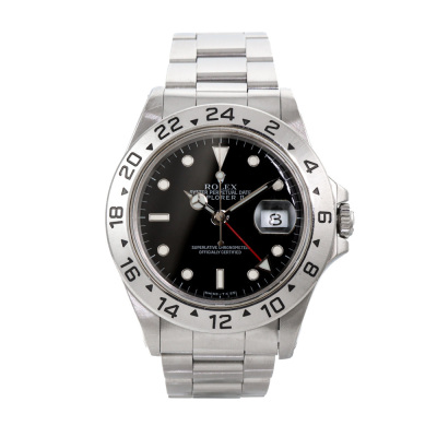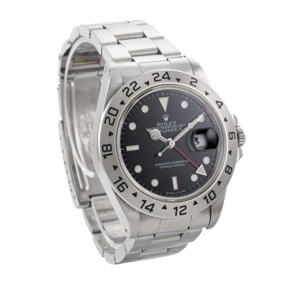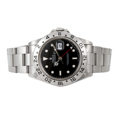 Rolex Oyster Perpetual Date Explorer ll stainless steel automatic mens watch. Black dial, date, case diameter: 40mm, wrist size: 19cm, Swiss made. Ref# 16570. Circa: 1993. With Rolex stainless steel Oyster bracelet and clasp. With Certificate of Authenticity and Rolex box. 3 month FSA warranty
